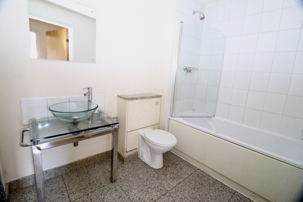 8' 6" x 6' 6" (2.60m x 2.00m) Bath with shower over. WC, wash hand basin. heated towel rail